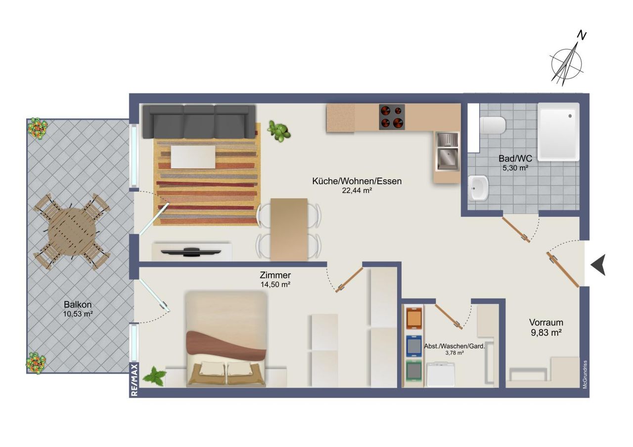 - Wohn-/Essbereich mit 22,44 m²