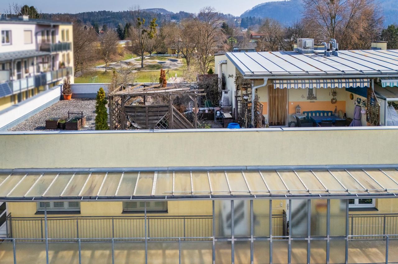 Modernes Wohnen in Gratkorn! Diese fantastisch geschnittene 3-Zimmer-Wohnung mit ca. 87 m² befindet sich in einer ruhigen Siedlung im Graz nahen Gratkorn. Die Aufteilung der Wohnung, der ca. 8 m² große Balkon, die ca. 16 m² große Dachterrasse, welche komplett überdacht ist, ein zugehöriger Tiefgaragenplatz, die ruhige Siedlungslage und ein ca. 5 m² großes Kellerabteil, sind nur einige Highlights dieser Wohnung. Das Wohnen findet auf zwei Ebenen statt. Alle Zimmer sind getrennt begehbar. Vom Koch-/Wohn-/Essbereich gelangen Sie auf den sonnigen Süd-Ostbalkon. Das Highlight, die ca. 16 m² große West-Nordterrasse, ist vom Obergeschoss aus erreichbar. Die moderne und gepflegte Küche, ist...