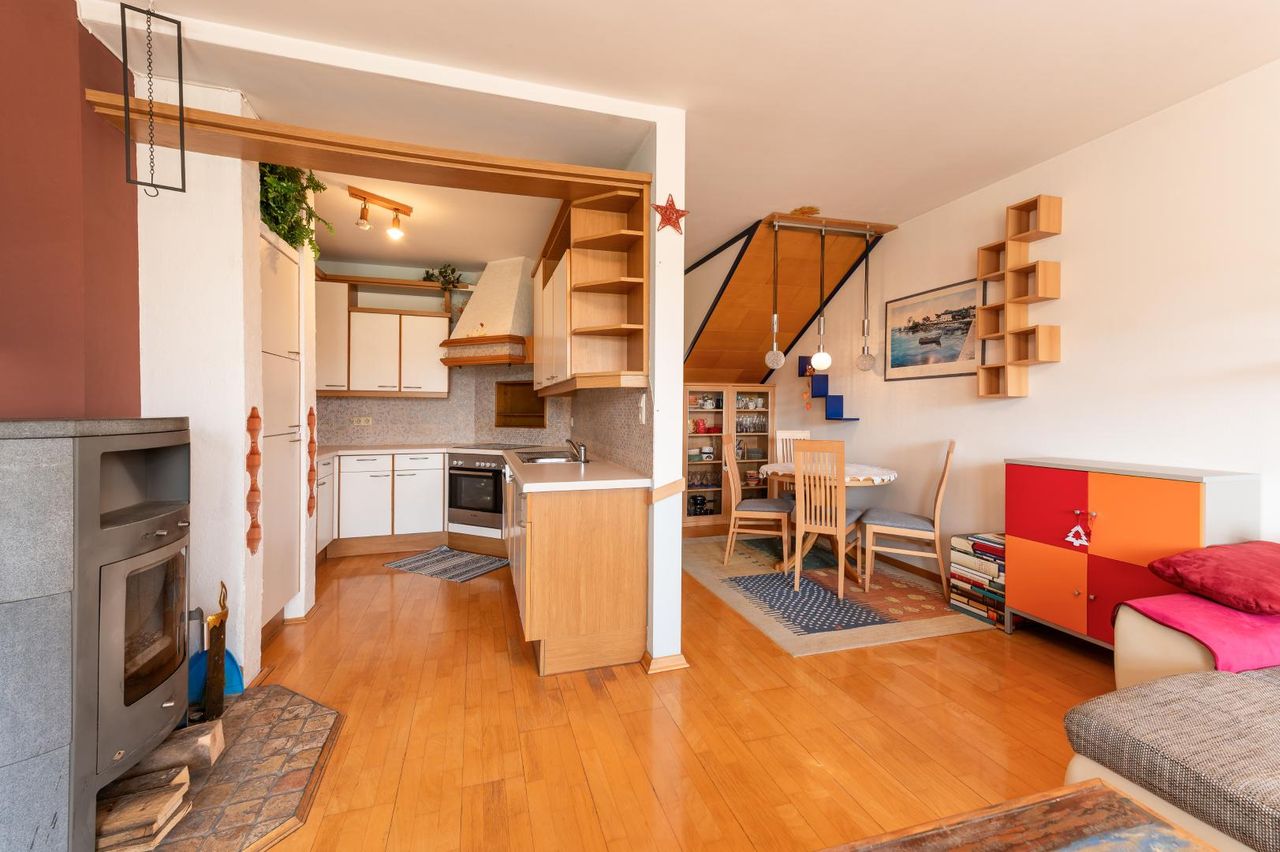 Die moderne und gepflegte Küche, ist im Kaufpreis enthalten und lädt ein, Ihre Lieben zu verwöhnen und das Essen mit einem Glas Wein im großzügigen Wohn-/Esszimmer oder auf Ihrer eigenen Dachterrasse, oder Balkon zu genießen.
