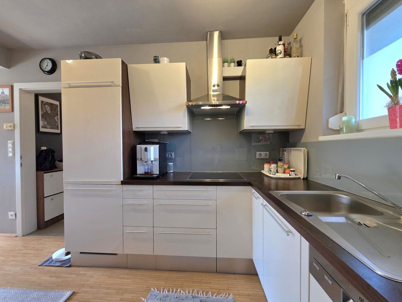 Der durchdachte Grundriss überzeugt mit einer großzügigen Wohnküche samt offener Einbauküche, die zum gemeinsamen Kochen und Verweilen einlädt. Hochwertige Fliesen und elegantes Parkett schaffen ein stilvolles Wohnambiente mit Wohlfühlcharakter. Das Badezimmer ist mit einer modernen Dusche ausgestattet und wirkt durch das Fenster besonders hell und freundlich. Das Badezimmer wurde im Jahr 2021 vollständig saniert.