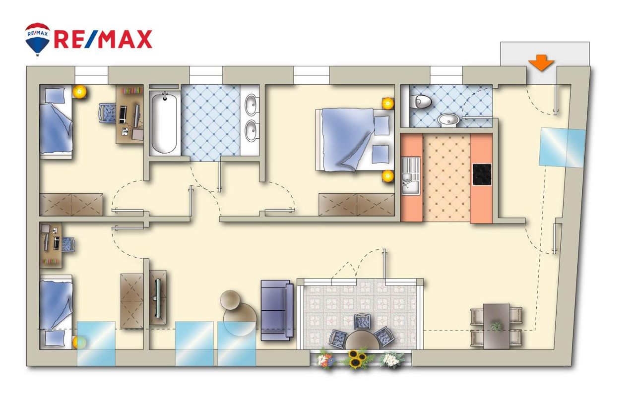 - 3 Schlafzimmer (ca. 9,80-12,10 m²)