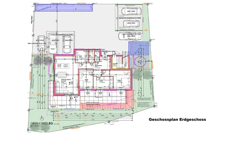 Zusätzlich erwerbbar ist das Doppelcarport und eine weiter Parkfläche im Freien, wo bei Bedarf selbstverständlich auch E-Ladestationen errichtet werden können.