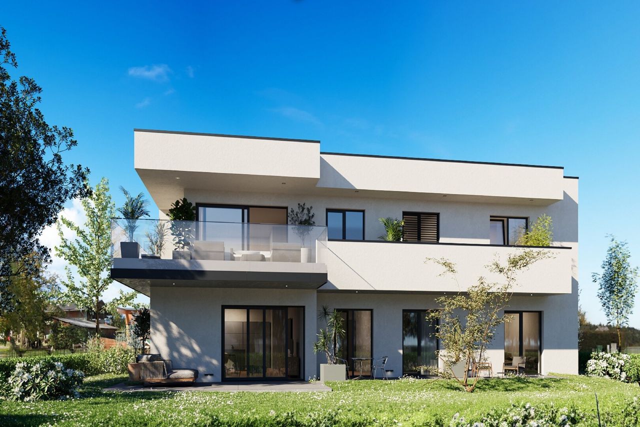 Freuen Sie sich auf Ihr zukünftiges Zuhause, wo der Charme der Natur mit modernem Wohnkomfort verschmilzt. Diese exklusive 125m² große Eigentumswohnung ist Teil eines Hauses mit nur zwei Wohneinheiten, das im Herbst/Winter 2026 fertiggestellt wird und Ihnen den Erstbezug ermöglicht. Die stilvolle Architektur des Hauses verleiht der Anlage einen zeitlosen Charakter, während hochwertige Materialien und eine Massivbauweise für Langlebigkeit und Wertbeständigkeit stehen. Großflächige, teils bodentiefe Fenster sowie Hebe-Schiebe-Türen an den Terrassen lassen das Tageslicht einströmen und schaffen eine harmonische Verbindung zwischen Innen- und Außenbereich. Im Inneren erwartet Sie ein harmonisches Ambiente höchsten Wohnkomforts: hochwertige Parkettböden und stilvolle Großformat-Fliesen sorgen für...