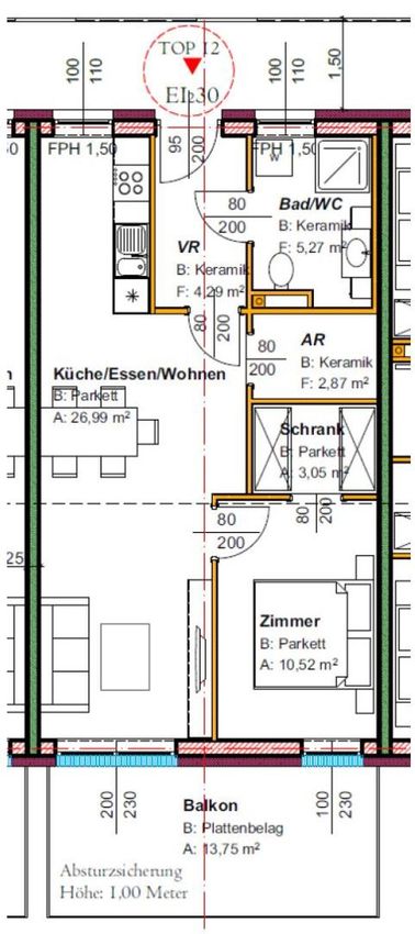 ca. 53 m² Wohnfläche, ca. 13 m² Balkon, Lift vorhanden, 2-Zimmer, Nahwärme/Fußbodenheizung, Parkett und Fliesen