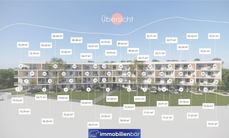 Die neuen Wohneinheiten in Toplage teilen sich auf 2 moderne Wohngebäude auf und bieten genau den modernen Lebensraum, von dem Sie schon immer geträumt haben. Sonnenlicht durchströmt jede der Wohnungen dank der traumhaften Südhanglage und verzaubert Ihr neues Zuhause in eine moderne und hochwertig ausgestattete Wohlfühloase.