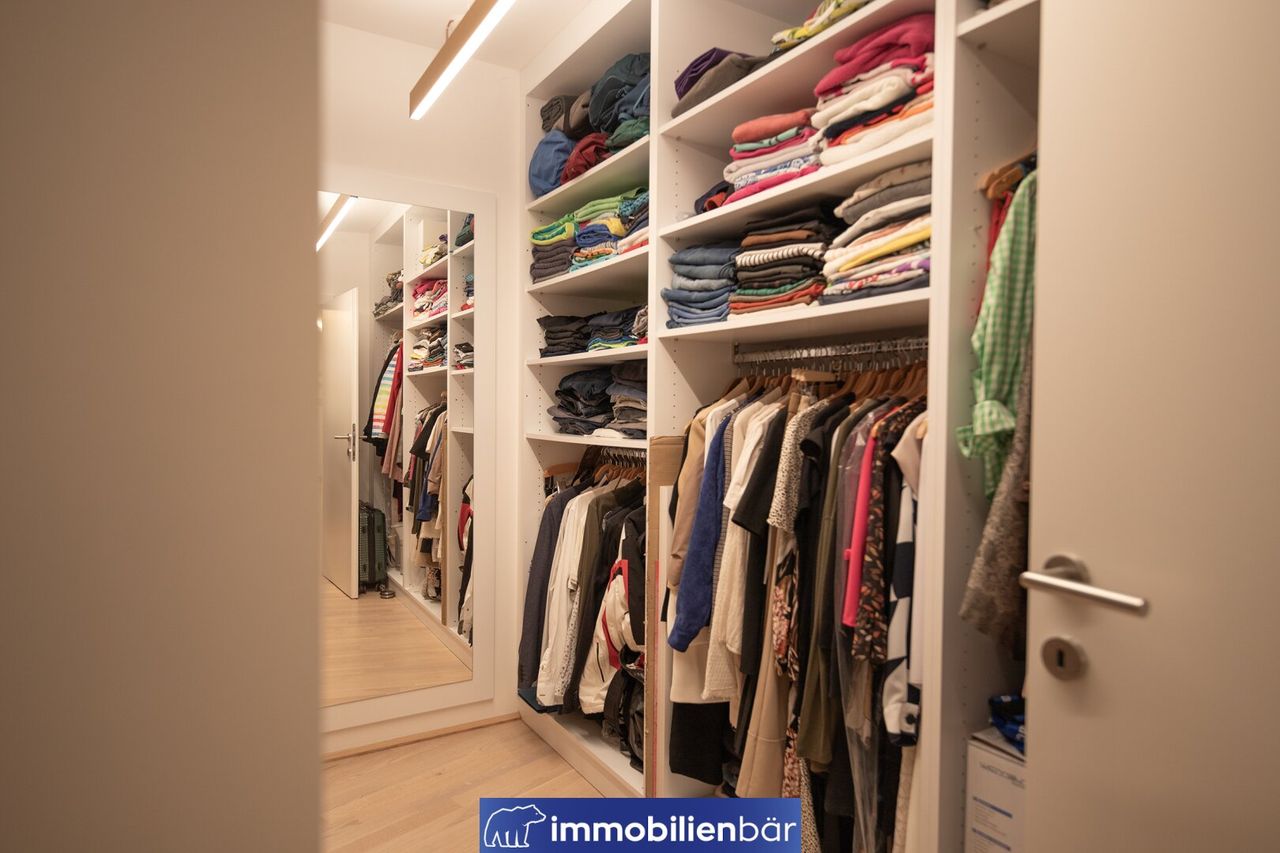 Zusätzlichen Stauraum finden Sie nicht nur im begehbaren Kleiderschrank, sondern auch im praktischen Abstellraum. Das separate WC ist praktisch vom Badezimmer getrennt. Auf