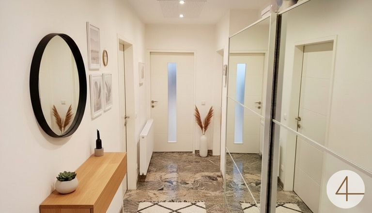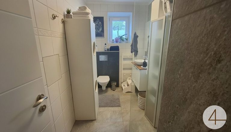 Die Wohnung besticht durch modernisierte Bodenbeläge sowie stilvolle Innentüren, die ein harmonisches und gepflegtes Wohnambiente schaffen. Das Badezimmer ist ebenfalls, in einem modernen Zustand.