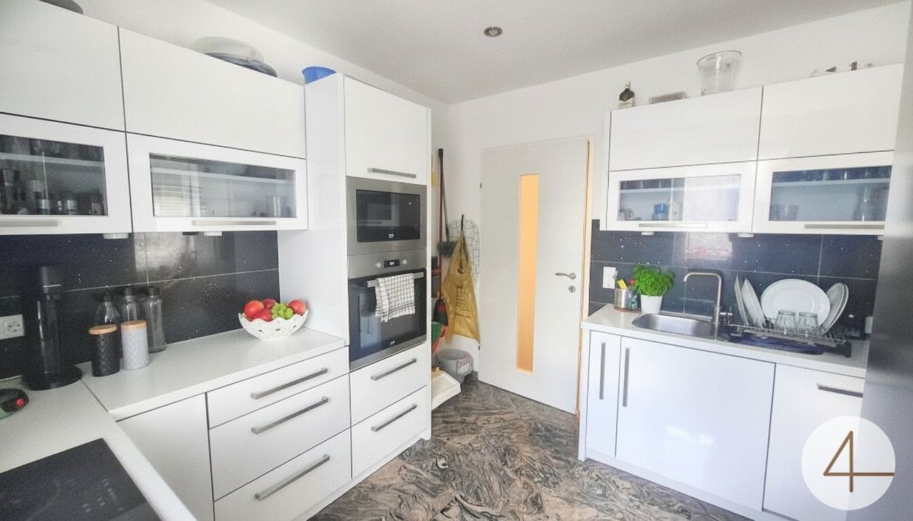 Möblierte Küche: Die wohnlich gestaltete Küche ist bereits möbliert und bietet alles, was Sie für die Zubereitung köstlicher Mahlzeiten benötigen.