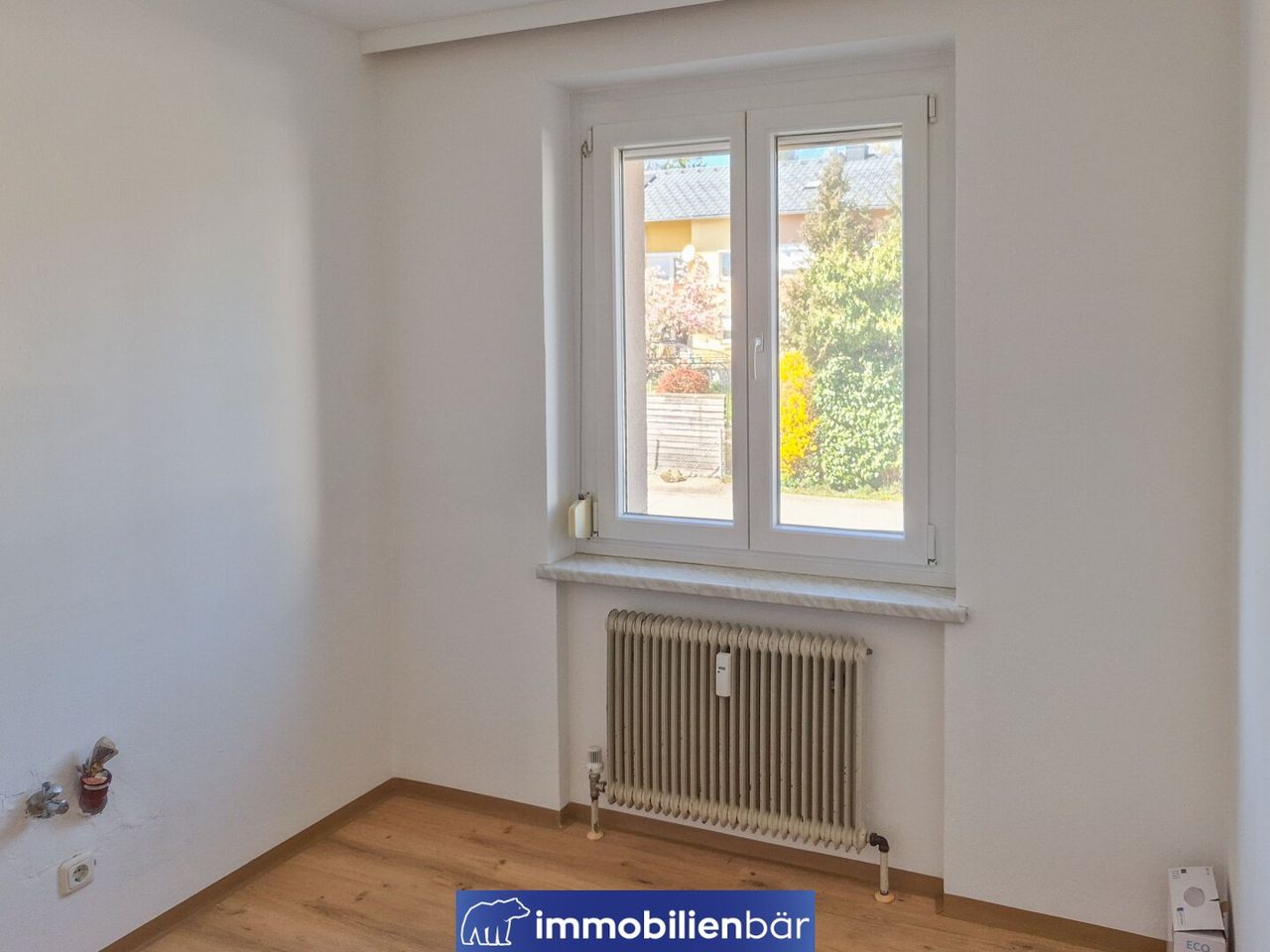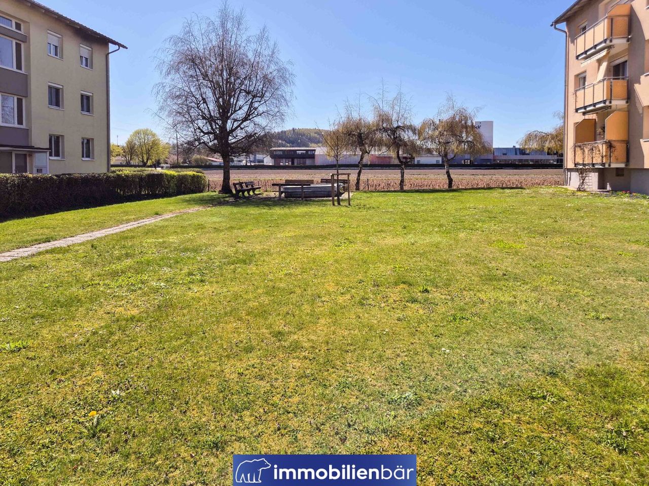 Ein besonderes Highlight ist der südseitig ausgerichtete Balkon, der für viel Tageslicht sorgt und zum Entspannen im Freien einlädt. Der davor gelegen Garten mit Spielplatz ist ideal für Familien, die ihre Kinder beim Spielen beaufsichtigen. Sämtliche Fenster sind mit Rollläden ausgestattet und bieten zusätzlichen Komfort sowie Sicht,- und Sonnenschutz. Die Küche ist nicht eingerichtet und bietet somit die...