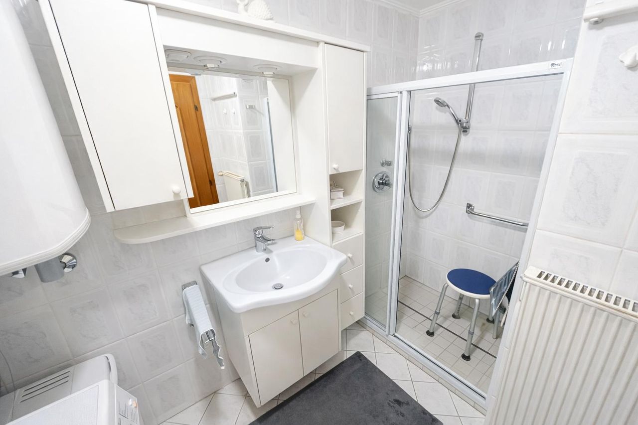 Zwei weitere Zimmer eignen sich ideal als Schlafzimmer, Kinder- oder Arbeitszimmer. Eines der Zimmer verfügt über einen direkten Zugang zur Loggia, die zum Entspannen im Freien einlädt. Das Badezimmer ist mit einer Dusche und einem Waschmaschinenanschluss ausgestattet. Ergänzt wird das Raumangebot durch ein separates WC.
