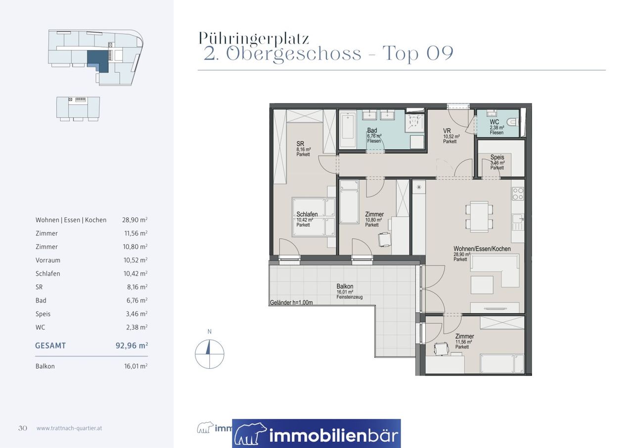 Trattnach.Quartier - großzügige 4 Zimmerwohnung mit Südwest Balkon - Top 9