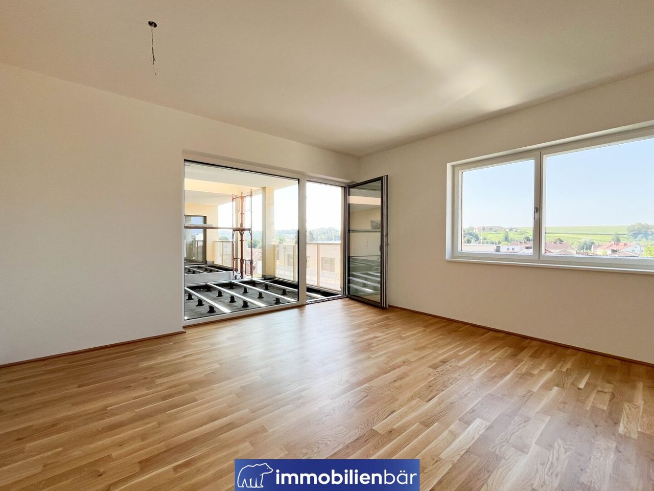 Fußbodenheizung, 3-Scheiben-Verglasung, Eichenparkett, elektrische Raffstores