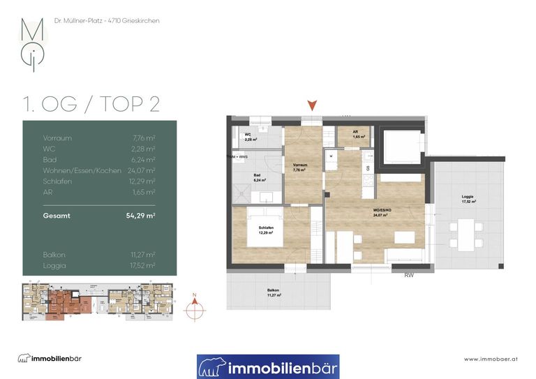 - 54,29 m² Wohnfläche