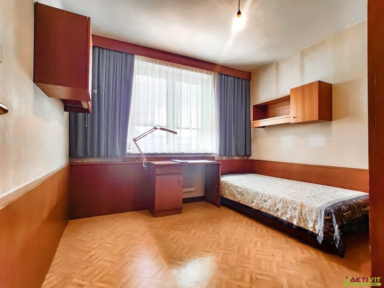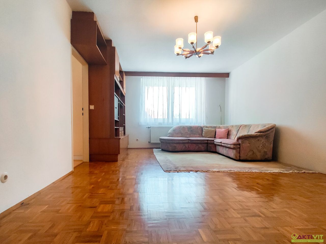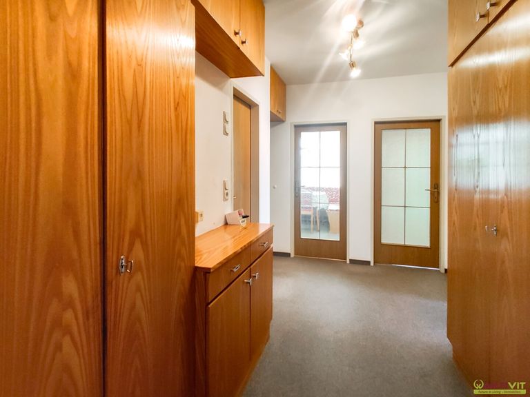Die Wohnung liegt im ersten Obergeschoss eines im Jahr 1964 errichteten und 1995 sanierten Mehrparteienhauses. Sie bietet rund 79 m² Wohnfläche, verteilt auf insgesamt 3,5 Zimmer. Der zentrale Vorraum erschließt alle Räume nahezu getrennt. Linker Hand befindet sich ein praktischer Abstellraum, das Badezimmer mit Fenster und Badewanne sowie ein separates WC. Geradeaus gelangt man in die Küche mit Essbereich sowie in ein angrenzendes Zimmer, das als Kinder- oder Schlafzimmer genutzt werden kann. Rechter Hand liegt das Wohnzimmer, das direkten Zugang zu einem weiteren Schlafzimmer bietet. Die Raumaufteilung bietet vielseitige Nutzungsmöglichkeiten für Paare, kleine Familien oder Einzelpersonen mit Platzbedarf.