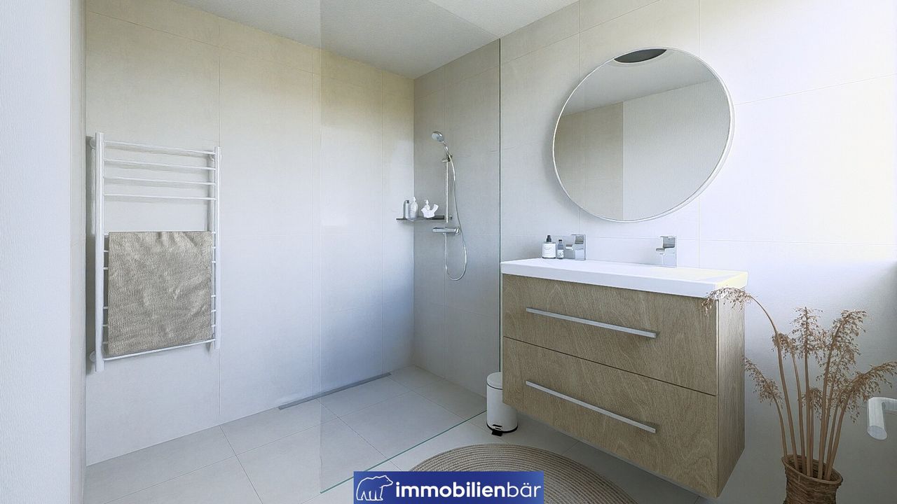 Stilvoll, durchdacht & modern. Die Wohnungen mit 35 bis 117 m² eignen sich perfekt für Singles, Paare und Familien. Auf den großzügigen Balkonen, Loggien oder Terrassen ist viel Platz geboten, der perfekte Ort für den morgendlichen Espresso. Hier holen Sie sich die Natur direkt in Ihren Wohnraum. Hochwertige Ausstattung, sowie Fußbodenheizung, edle Fliesen und moderne Sanitäreinrichtung sorgen für höchsten Wohngenuss, der dank Photovoltaikanlage, Luft-Wärme-Pumpe und moderner Bauweise auch noch energieeffizient und umweltbewusst ist.
