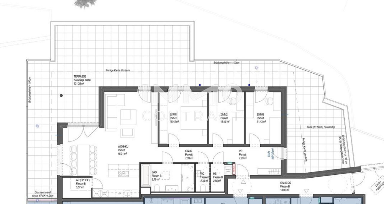 Raumaufteilung: Vorraum, Gang, Hauswirtschaftsraum, WC, Bad, 3 Schlafzimmer, Wohn-Essküche (Küche nicht möbliert), Abstellraum im Küchenbereich (Speis), Terrasse. Die großzügige Freifläche ermöglicht einen traumhaften Ausblick und schafft somit zusätzliche Lebensqualität.