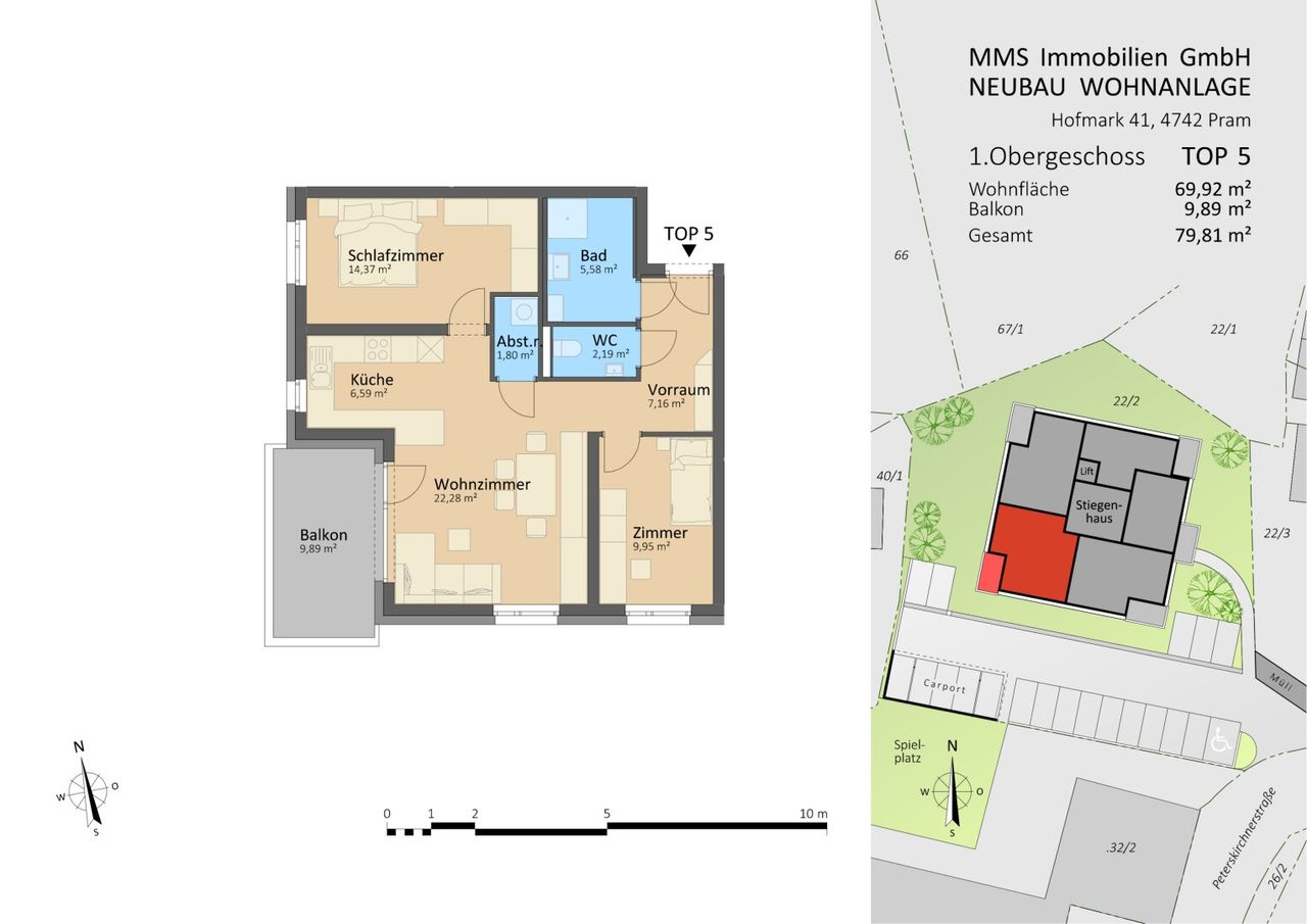 Baubeginn erfolgt! Neubau 3 Zimmer Wohnung im Zentrum von Pram zu kaufen!