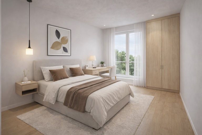 - Ebene 1: Kochen/Wohnen/Essen, Balkon, 2 Bäder, 2 Schlafzimmer, Abstellfläche