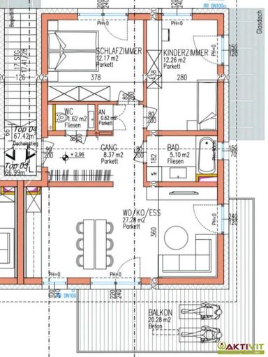 Die Wohnung befindet sich in einem neuwertigen Zustand und wird als Erstbezug angeboten. Das Gebäude wurde 2023 in Massivziegelbauweise errichtet und überzeugt durch eine zeitgemäße und hochwertige Bauweise. Die Böden sind mit Parkett und Fliesen ausgestattet. Die Beheizung erfolgt über eine energieeffiziente Fußbodenheizung.
