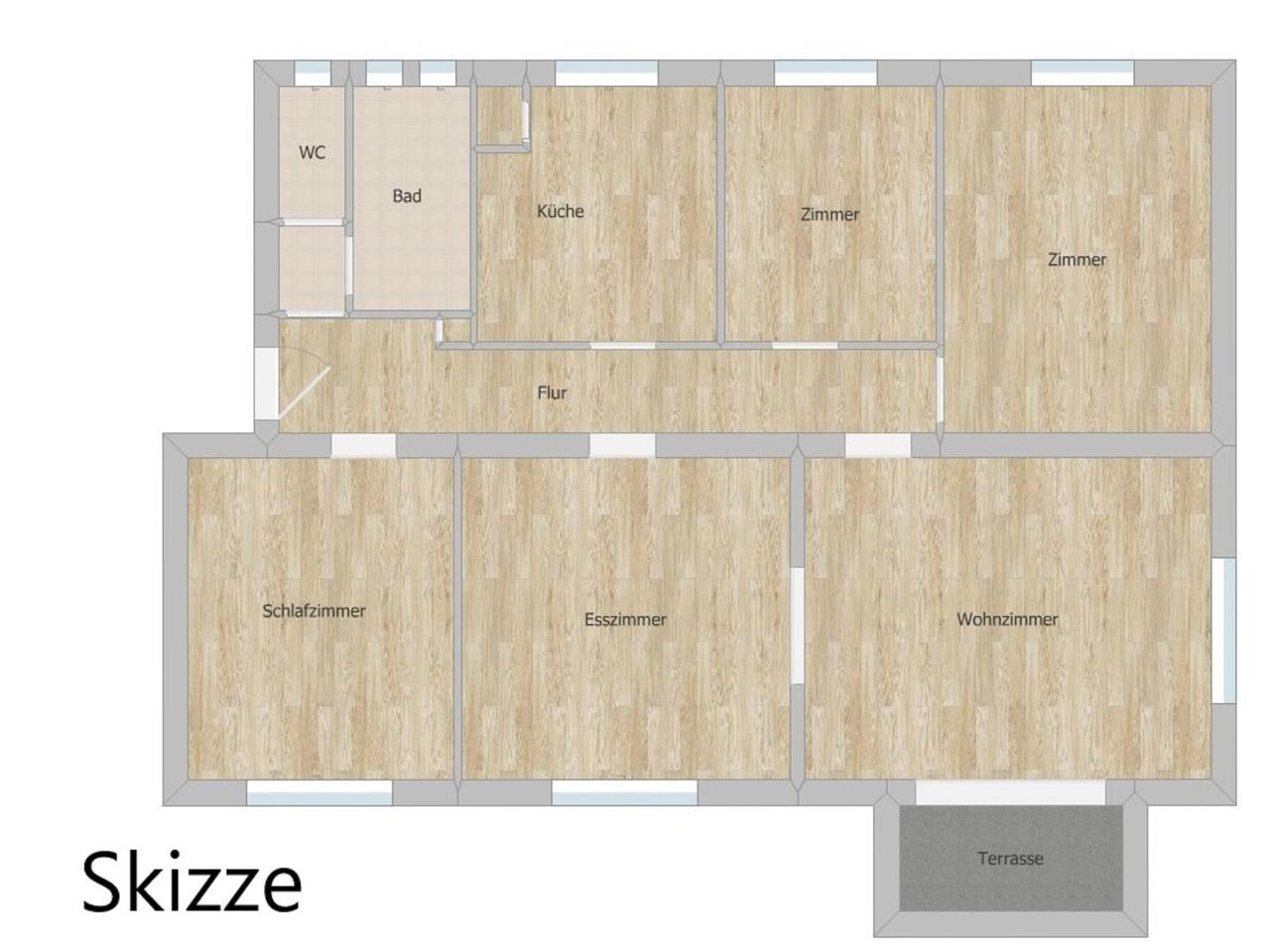 Die Wohnung bietet noch Potenzial für eine persönliche Note: Die Böden können erneuert oder geschliffen, die Wände frisch ausgemalt und Küche sowie Badezimmer modernisiert werden, um der Wohnung neuen Glanz zu verleihen.