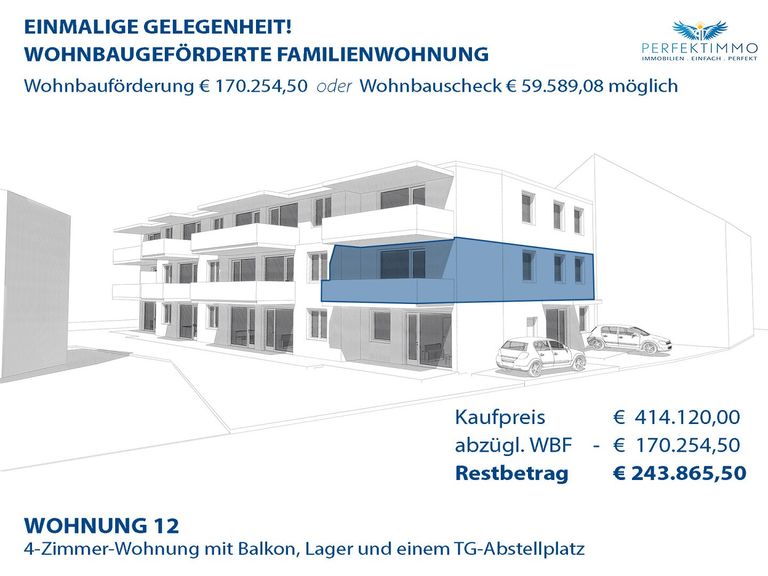 Schnell zugreifen: Wohnbaugeförderte Familienwohnung W 12 inkl. 1 TG-Abstellplatz