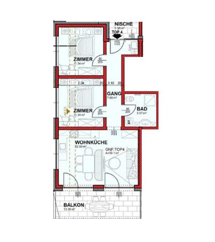 - 13,38 m² Balkon