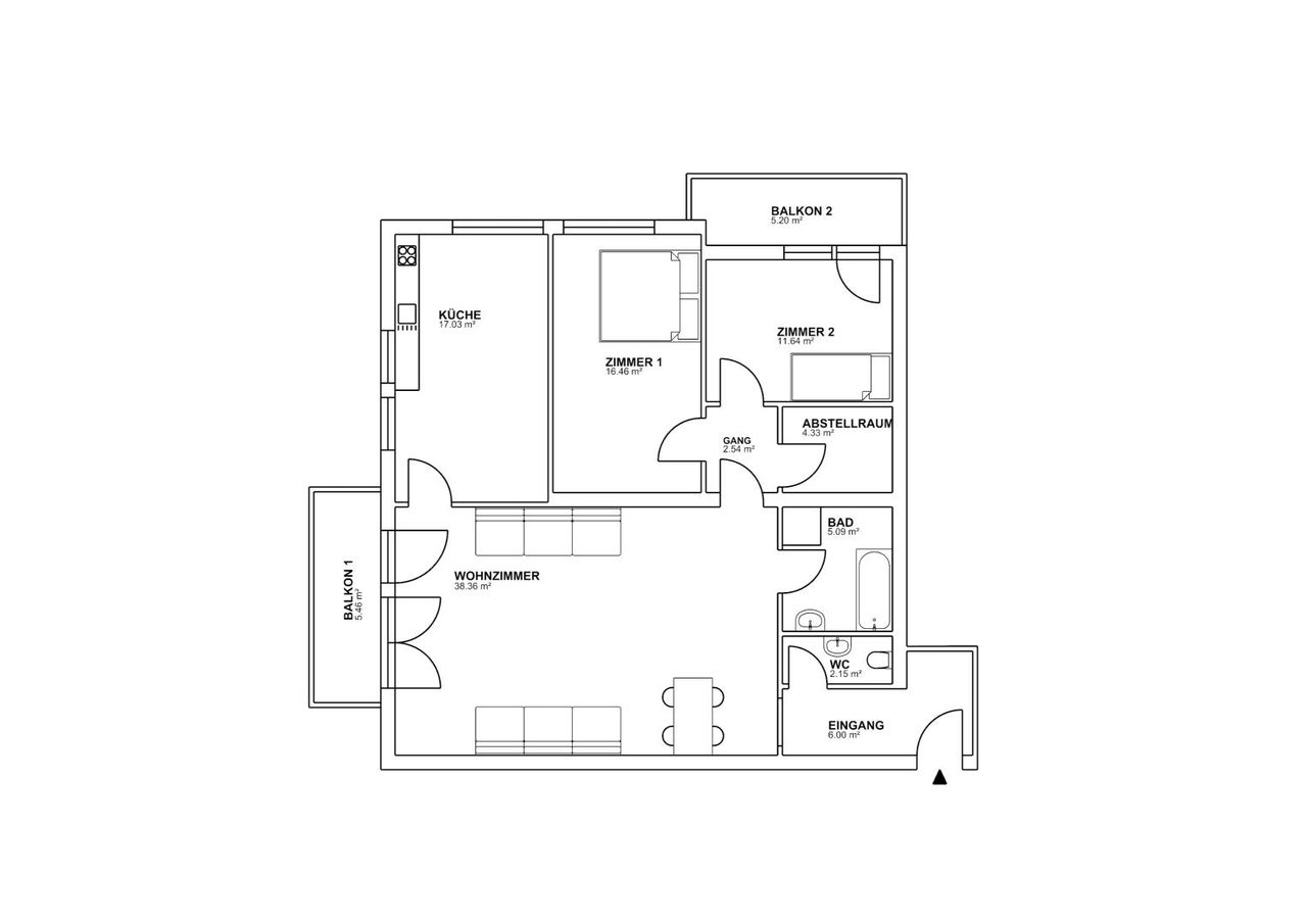 - Balkon 2 (Ausrichtung Norden) 5,20 m²