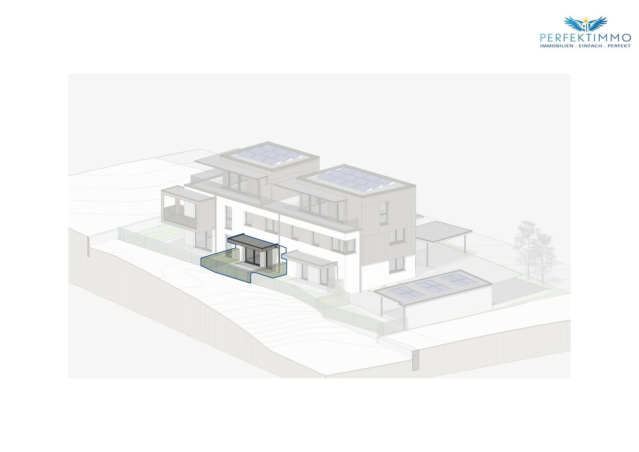 Das Wohnhaus erstreckt sich über vier Etagen – Untergeschoss, Erdgeschoss, Obergeschoss und Dachgeschoss – und überzeugt durch helle, gut geschnittene Wohnungen mit großzügigen Fensterflächen. Jede Einheit verfügt über einen privaten Außenbereich in Form von Balkon, Terrasse oder Garten, ideal, um Sonne, frische Luft und Ausblick zu genießen. Die Architektur fügt sich harmonisch in die bestehende Umgebung ein und vermittelt ein ruhiges, stimmiges Erscheinungsbild.