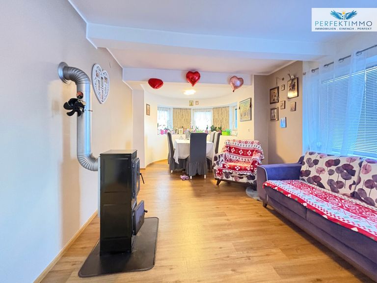 Willkommen in dieser bezaubernden Wohnung, die auf einer großzügigen Wohnnutzfläche von etwa 125,24 m² alles für eine Familie bereithält und Raum zur persönlichen Entfaltung bietet. Vor zwei Jahren wurde das Objekt liebevoll renoviert. Das Badezimmer, der Schwedenofen und die Elektroheizkörper wurden genau so erneuert wie die Eingangstür und die Innentüren. Auch alle Böden wurden neu verlegt und das Dach neu gedeckt.