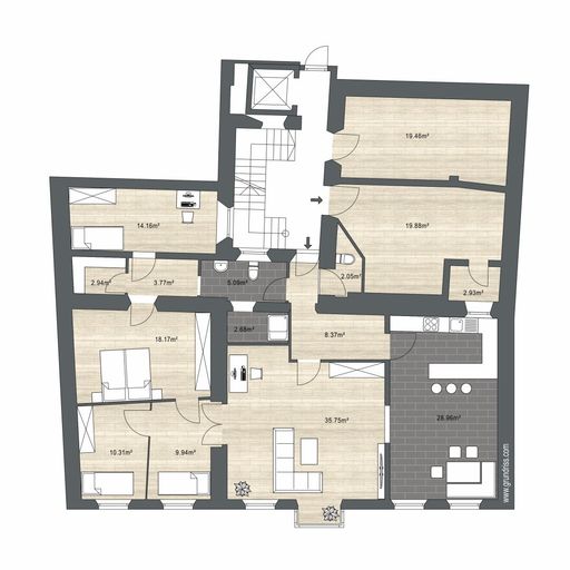Die Wohnung befindet sich in einem historischen Wohnhaus mit Lift und bietet insgesamt 184 m² Nutzfläche. Sofort bezugsbereit!