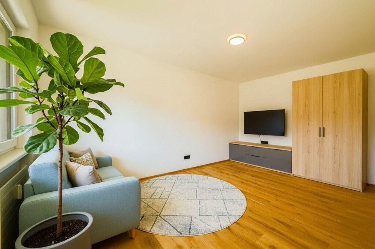 - Böden: hochwertiger Echtholzparkett (Eiche) sowie Fliesen im Badezimmer