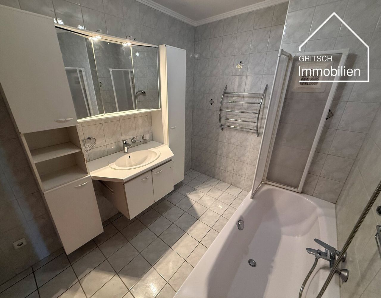 Zwei Schlafzimmer, ein Badezimmer mit Badewanne und Dusche sowie ein separates WC schaffen komfortables Wohnen für Paare, Familien oder alle, die ein Zuhause mit Freiraum suchen.