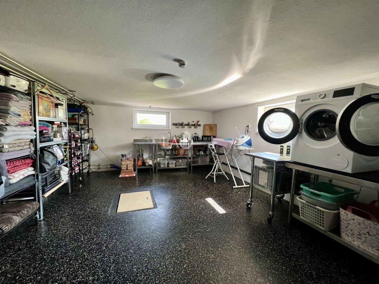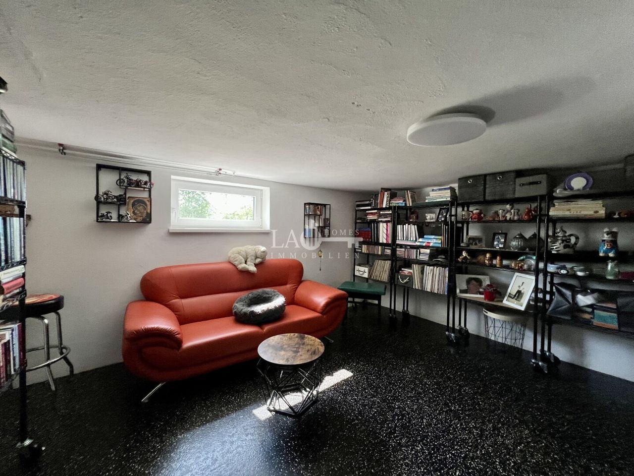 Der Keller 1 beinhaltet zudem einen Wirtschaftsraum mit 2 Waschmaschinen und 2 Trocknern, einer neuwertiger Küche und einer Bibliothek.