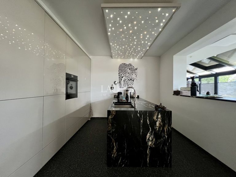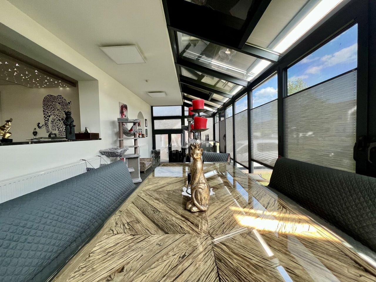 Ein lichtdurchfluteter Wohnbereich mit integrierter Design - Küche und anschließendem Essbereich im großzügigen Wintergarten vermitteln ein Gefühl von wohliger Geborgenheit.