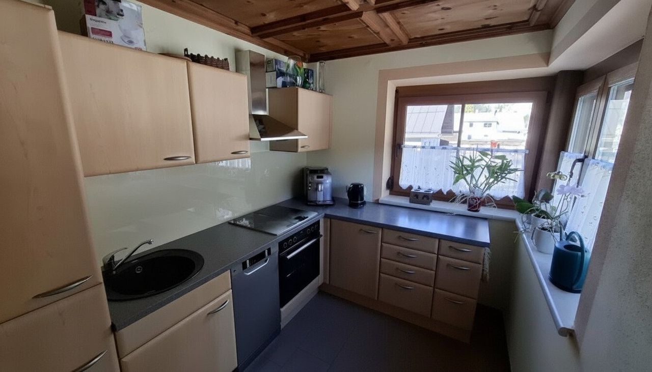 Für wohlige Wärme sorgen eine moderne Fußbodenheizung in der Küche, ein Pelletofen im Wohnzimmer sowie eine effiziente Zentralheizung – so sind Sie in jeder Jahreszeit bestens versorgt. Die voll ausgestattete Einbauküche macht das Kochen zum Vergnügen und bietet ausreichend Platz für die Zubereitung Ihrer Lieblingsgerichte.