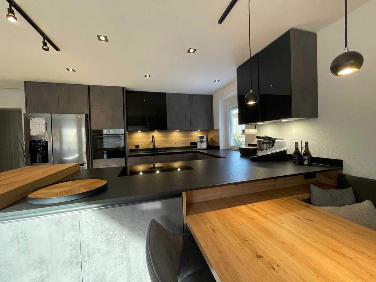 - moderne Einbauküche mit Steinplatte,