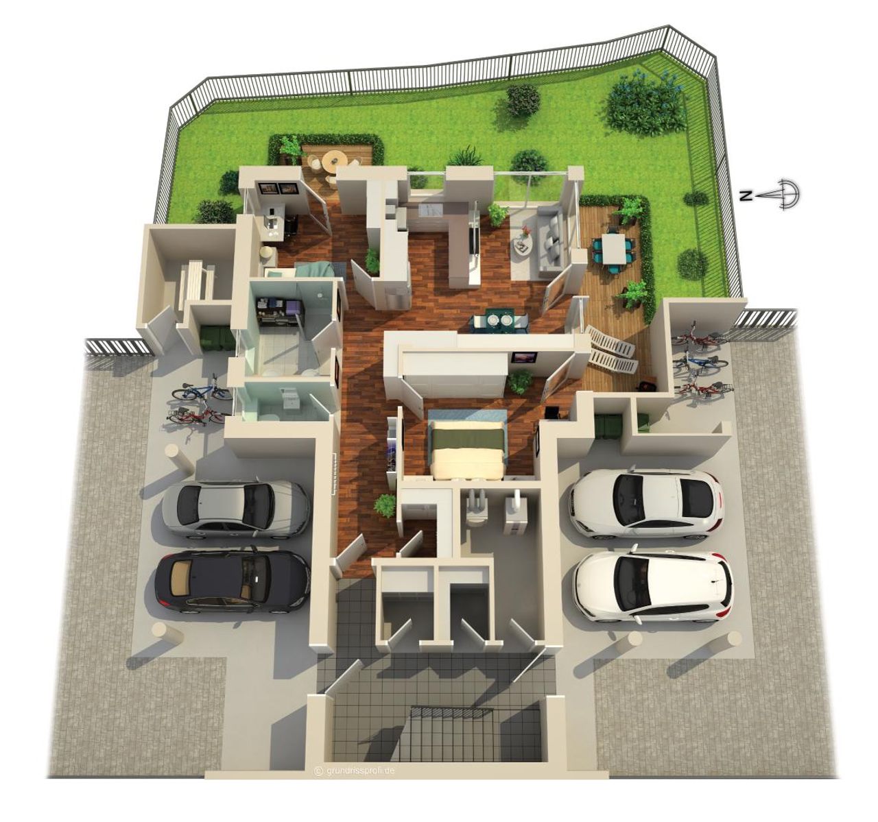 großer Garten (70 m²), Terrasse (19 m²), 2 Carports