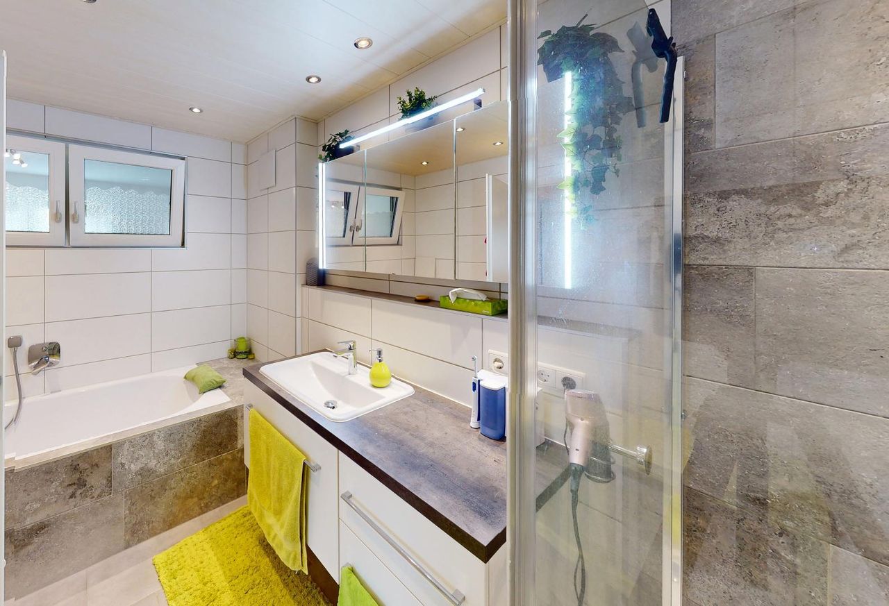 • Badezimmer mit Dusche & Badewanne