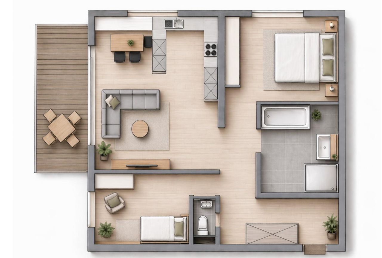 • Wohnfläche: ca. 3 Zimmer (2 Schlafzimmer)