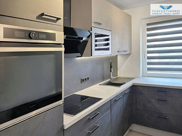 Die vorhandene Einbauküche fügt sich funktional in das Gesamtbild ein und ermöglicht einen unkomplizierten Einzug. Hochwertige Bodenbeläge aus Parkett, Fliesen und Laminat unterstreichen das gepflegte Erscheinungsbild der Wohnung. Beheizt wird die Einheit über eine zentrale Erdgasheizung mittels Radiatoren.