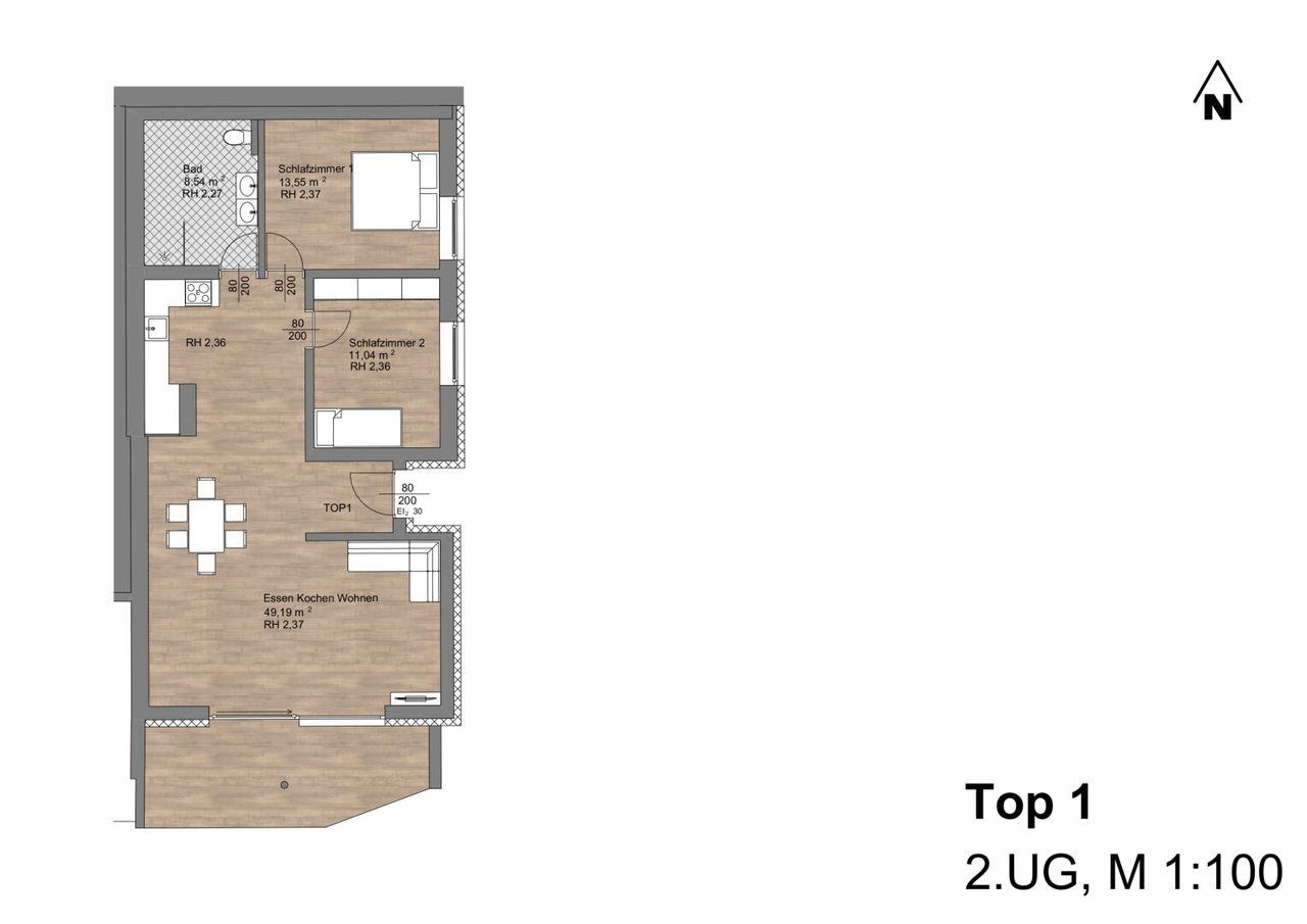 Die schlüsselfertigen Appartements verfügen über eine Bodenheizung mittels Luftwärmepumpe sowie moderne Bäder mit eben begehbarer Regenwalddusche.