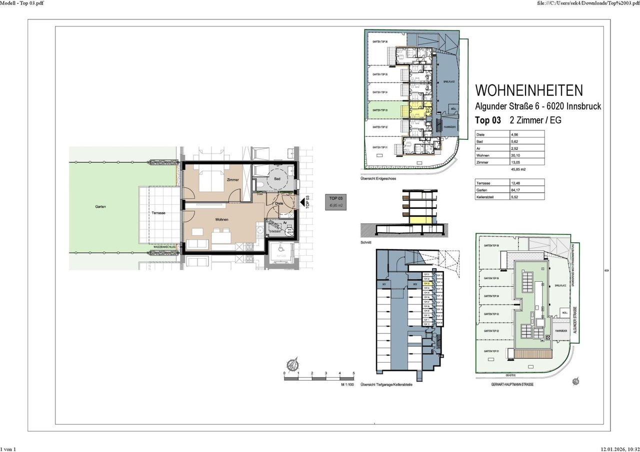 Neubauwohnungen im grünen Amras – PROVISIONSFREI für den Käufer In begehrter Lage von Innsbruck-Amras entsteht ein modernes Neubauprojekt mit 20 hochwertigen Eigentumswohnungen. Die 2- bis 4-Zimmer-Wohnungen sind alle nach Südwesten ausgerichtet und verfügen über Garten, Terrasse oder Balkon. Hochwertige Ausstattung, nachhaltige Energietechnik mit Luftwärmepumpe & Photovoltaik, Tiefgarage mit E-Lade-Vorbereitung sowie eine ausgezeichnete Infrastruktur mit Nähe zum DEZ, öffentlichen Verkehrsmitteln und vielfältigen Freizeitmöglichkeiten machen dieses Projekt besonders attraktiv. Die gegenständliche 2-Zimmer-Wohnung befindet sich im Erdgeschoß. Sie verfügt über eine Wohnfläche von ca. 45,85 m² und einer Freifläche von ca. 96,65 m² Ideal für Eigennutzer und Anleger Für nähere Informationen zur Immobilie...