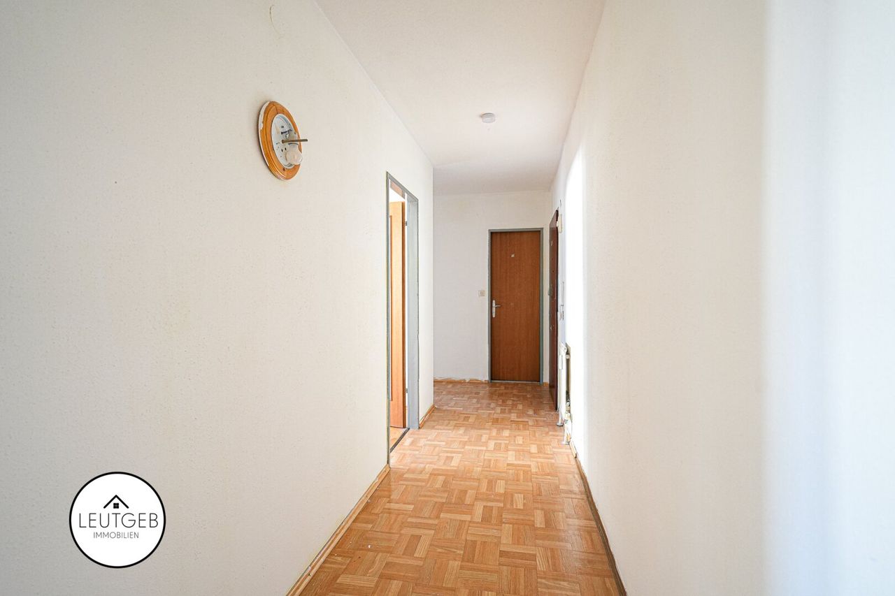 Die Wohnung befindet sich in einem im Jahr 1969 erbauten Mehrparteienhaus und überzeugt vor allem durch ihren praktischen, zentral begehbaren Grundriss, der eine optimale Nutzung der Räume ermöglicht.