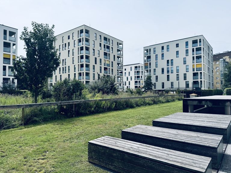 Bei der Konzeption der Wohnanlage wurde großer Wert auf eine harmonische Verbindung von urbanem Wohnen und naturnahem Lebensraum gelegt.