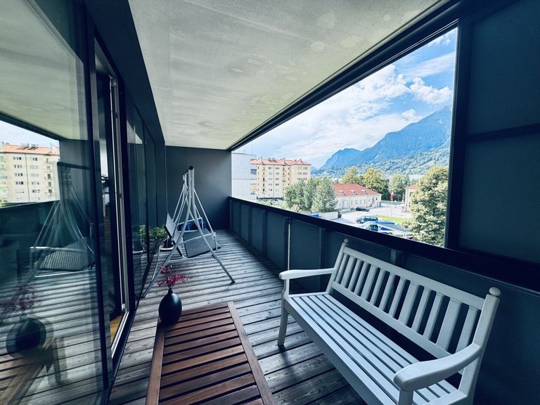 Innsbruck: Stylische 3-Zimmer-Wohnung mit 14 m² Balkon, Alpenblick & großzügiger Park- und Gartenanlage