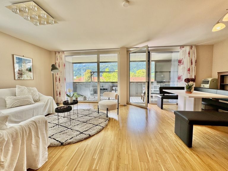 Die nördlich ausgerichtete Wohnung mit Lift überzeugt mit einem durchdachten Grundriss, lichtdurchfluteten Räumen und einem großzügigen Balkon mit traumhaftem Blick auf die Alpen.