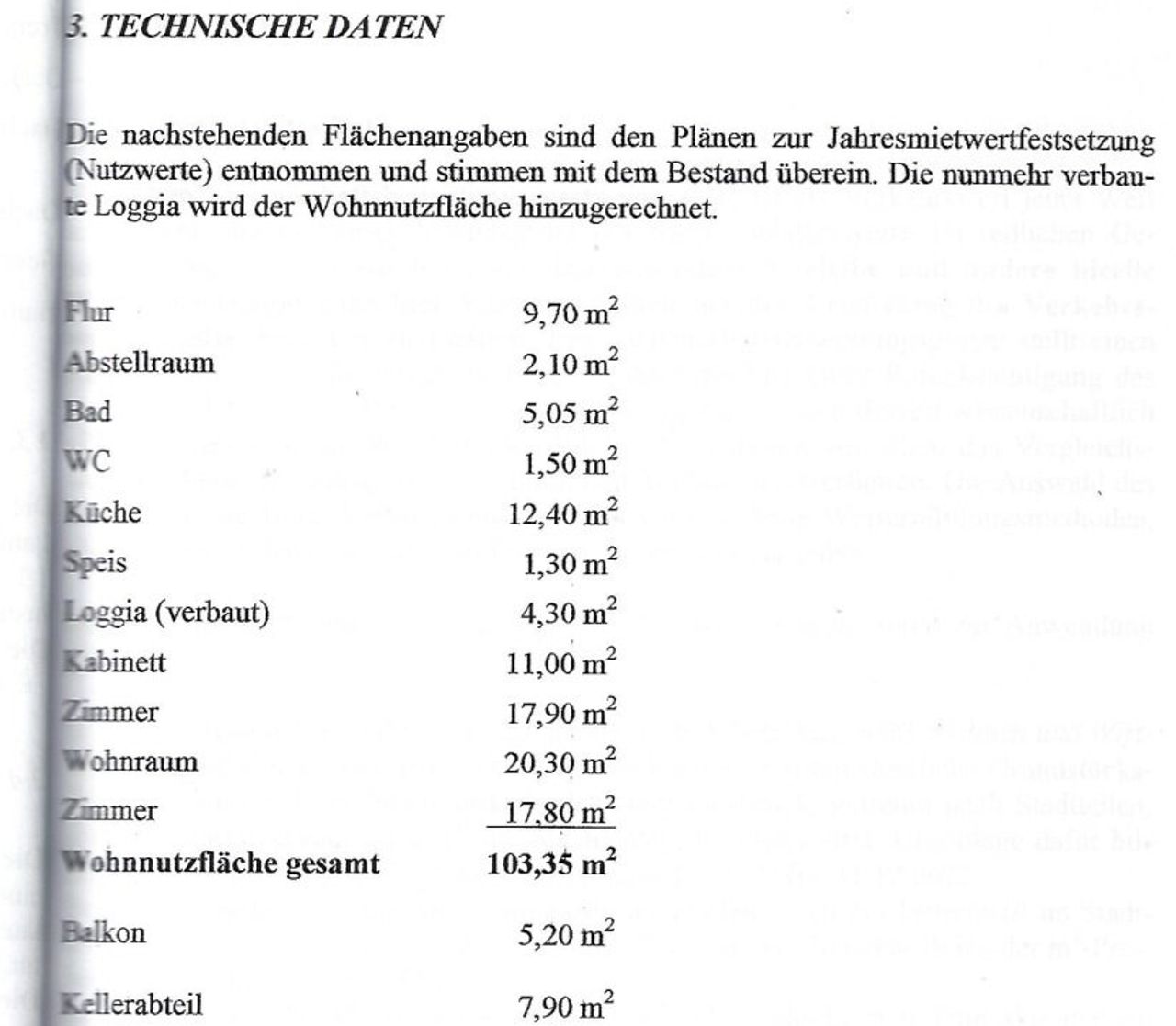 - Wohnnutzfläche: ca. 103,35 m2 (gemäß durch die Eigentümerseite vorgelegtem Gutachten)