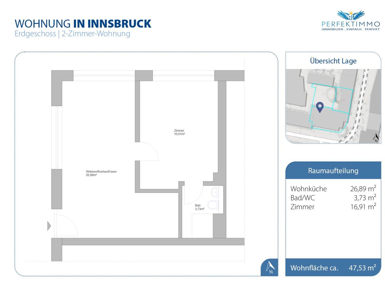 Wohnnutzfläche: ca. 47,53 m²