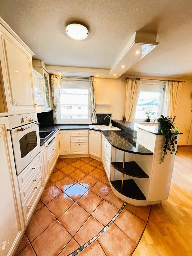 Zum Verkauf steht diese sehr gut eingeteilte 3-Zimmer-Wohnung einer ca.1999 errichteten Wohnanlage in der Siemensstraße in Neurum. Neben einer tollen Lage an der Stadtgrenze von Innsbruck überzeugt die ca. 78m² große Wohnung durch hochwertige Echtholzparkettböden, einem Badezimmer mit Marmorwaschbecken als Eye-Catcher,einem WASSERFALL-Wasserhahn und gold-/silberfarbenen Armaturen sowie einer eleganten Design-Küche von Gatto Cucine, dem italienischen Edelküchenhersteller. Die stilvolle Küche beeindruckt durch eine wunderschöne Granit-Arbeitsplatte sowie geschmackvollen Glasvitrinen mit indirekter Beleuchtung und ist ausgestattet mit einem hüfthohen Backofen, Geschirrspüler, Kühlschrank und Elektro-Herd von den Marken Neff und Miele. Das ästhetische Waschbecken im separaten WC ist von Porcelaine de Paris.