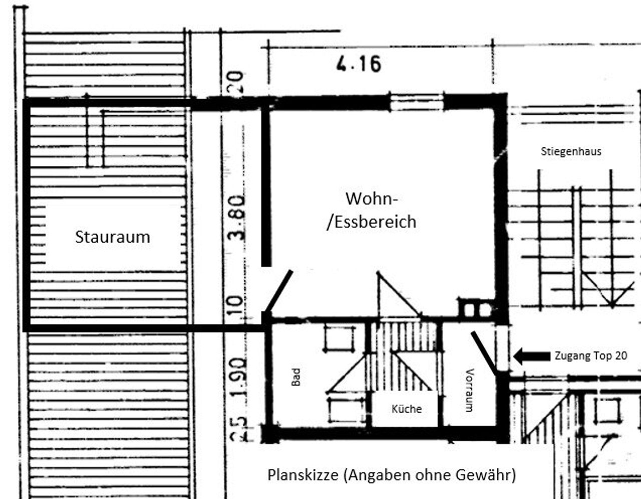 - 1 PKW kann laut Hausordnung auf der Allgemeinfläche vor dem Haus geparkt werden.